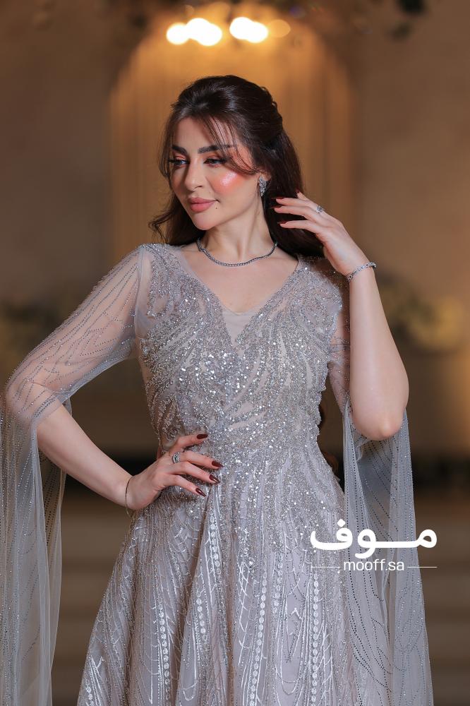 تألقي كأنك من نجمات السجادة الحمراء بهذا الفستان الاستثنائي الذي يجمع بين النعومة والترف في كل خيط وتفصيلة. فستان سهرة بلون فضي-رمادي راقٍ، بتصميم فريد يلفت الأنظار ويترك أثرًا لا يُنسى.